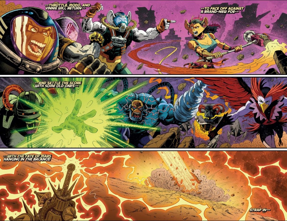 PORTLAND, OR (January 21, 2026) – THE RED PLANET’S RADDEST ROGUES ARE ABOUT TO MEET THEIR MATCH! Oni Press, the multiple Eisner and Harvey Award–winning publisher of groundbreaking comics and graphic novels since 1997, and the Nacelle Company are proud to reveal a major new turning point for the Nacelleverse, spinning out of BIKER MICE FROM MARS #8 – on sale in comic shops everywhere tomorrow, January 21st, from red-hot writer Matt Hotson (Power Rangers: The Return) and high-powered artist Jordi Tarragona (Hal Jordan and the Green Lantern Corps)! As Throttle, Modo, and Vinnie enter the grand finale of the cataclysmic second story arc, “Intergalactic Odyssey,” they’ll be surprised to find a brand-new (literally!) antagonist waiting in the wings: Scorch – the first comic book appearance of the major new Biker Mice character slated to debut on-screen in the upcoming, all-new Biker Mice from Mars animated series, produced by the Nacelle Company and Ryan Reynolds’ Maximum Effort.
