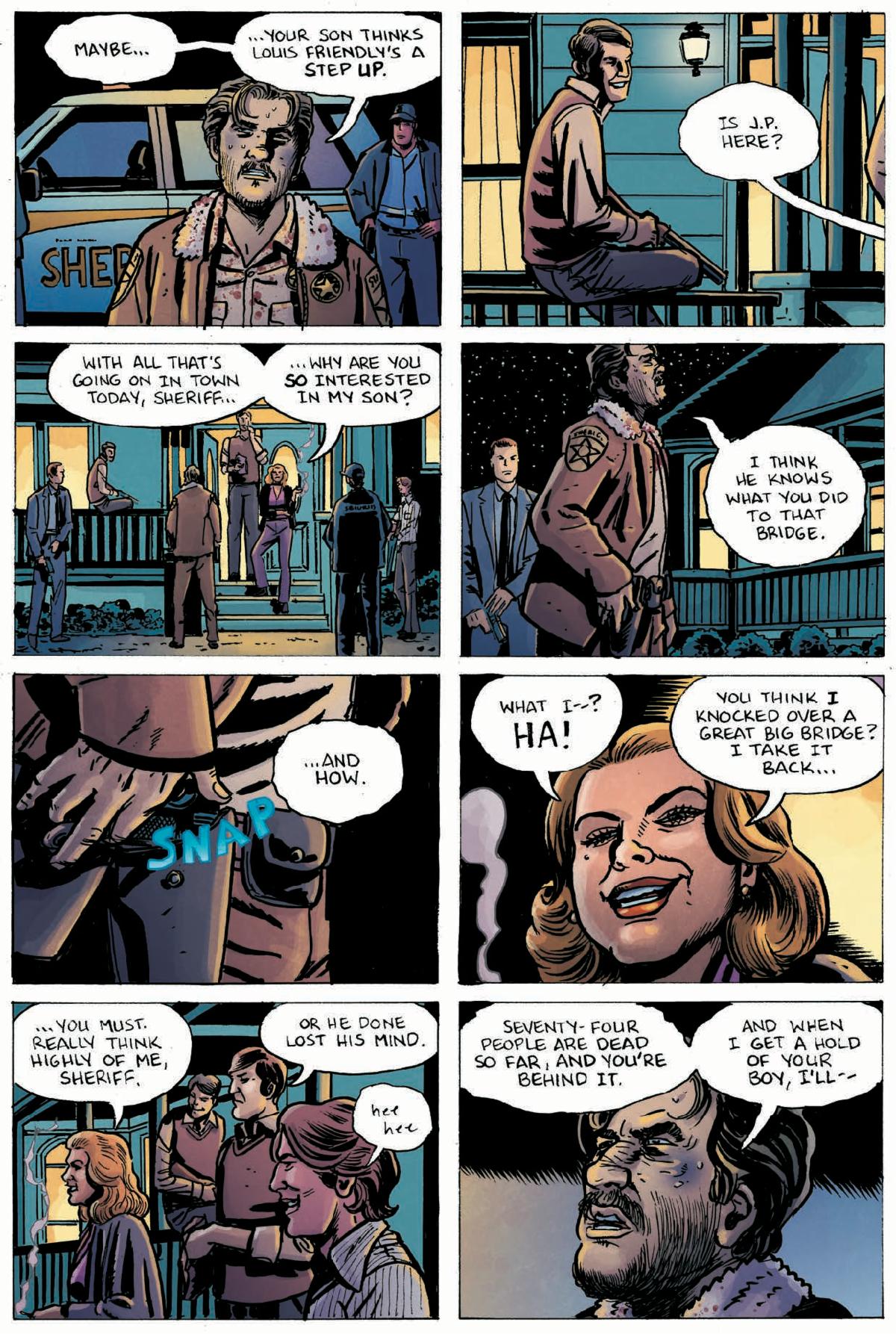| LOS ANGELES 09/18/2025 – Today Skybound and Image Comics shared a glimpse at interior pages and the cover of Good as Dead #2, from Eisner Award-winning comics icons David & Maria Lapham (Stray Bullets) and co-creators Chris Black (creator and showrunner, Monarch: Legacy of Monsters) and David Alpert. Set in the shadows of a seemingly quiet small town, Good as Dead is a simmering thriller packed with crime, justice, death, and long-buried secrets. The second issue of this haunting tale will debut in comic book shops on October 15, 2025. The Emissary Bridge has always connected the citizens of Port Linden to hope and opportunity. But when one man shockingly sets himself on fire, the bridge now brings something else to the town–CERTAIN DEATH. In issue #2, Port Linden is on fire, and Sheriff Calhoun is running out of time to find out who did it. But the only way to catch a criminal is to turn to the most dangerous person he knows – his sister… Eash issue of Good as Dead will be double-sized and written by David and Maria Lapham, with art and letters by David Lapham, and colors by Dee Cunniffe (Redneck). Good as Dead #2 (Lunar Code: 0825IM0372| SRP: $7.99) will be available at comic book shops and digital platforms including Amazon Kindle, Apple Books, and Google Play on Wednesday, October 15, 2025. |