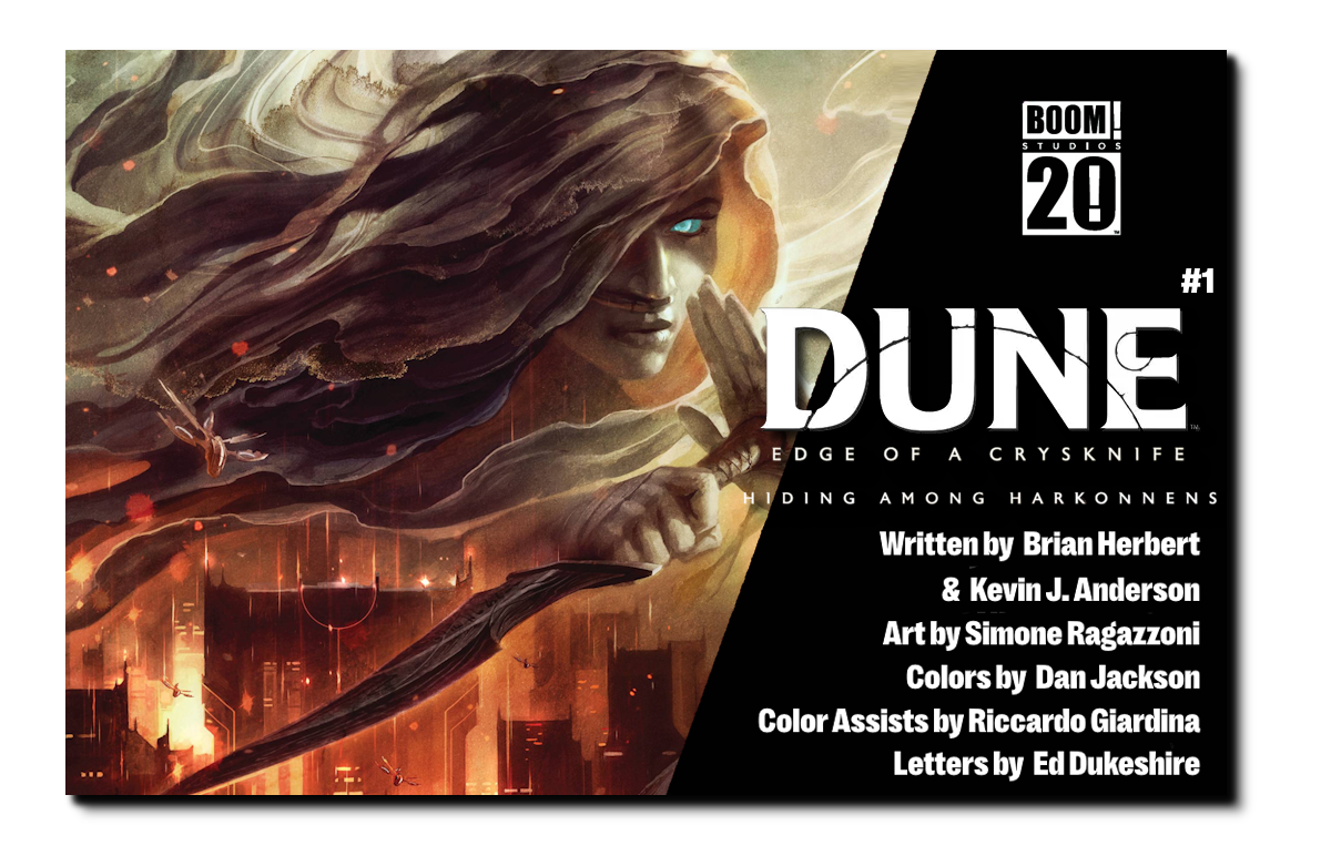 This Wednesday, July 2nd, BOOM! Studios is releasing DUNE: Edge of a Crysknife – Hiding Among Harkonnens #1 – a brand-new one-shot further expanding the vast and rich universe of Frank Herbert’s seminal sci-fi novel Dune. The exploration into unexplored regions of the Dune mythos is penned by award-winning novelists Brian Herbert and Kevin J. Anderson, with acclaimed Dune artist Simone Ragazzoni returning to illustrate.