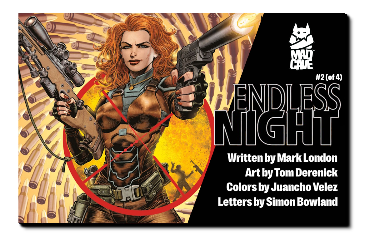 ENDLESS NIGHT is Mad Cave’s miniseries event of Summer 2025, a genre-smashing collision of archetypal heroes by celebrated writer Mark London (Battlecats, Hunt.Kill.Repeat.) and acclaimed artist Tom Derenick (Justice League), set in the universe of dark conspiracies, hard-boiled mystery, and unnatural menace known as UNDERWORLD!