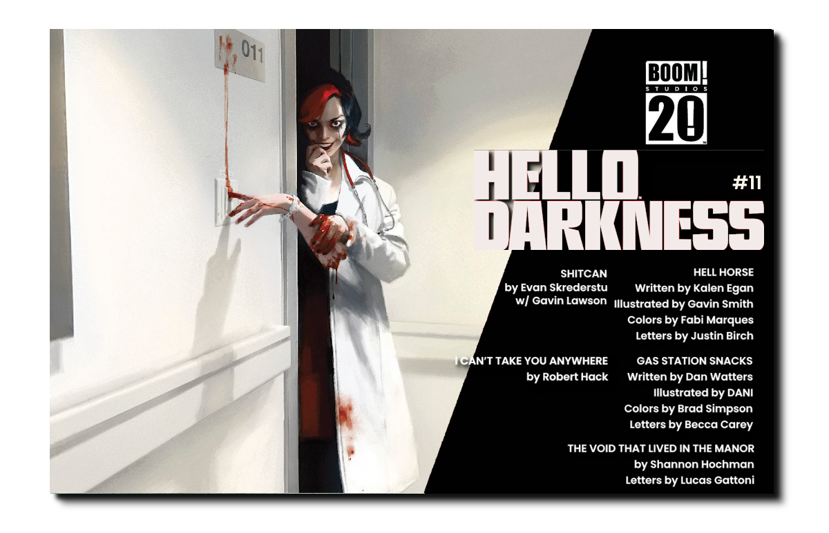 HELLO DARKNESS #11 will be available in comic shops June 11, 2025. It is available for pre-order at your local comic shop. Digital copies can be purchased from content providers, including Kindle, iBooks, and Google Play.