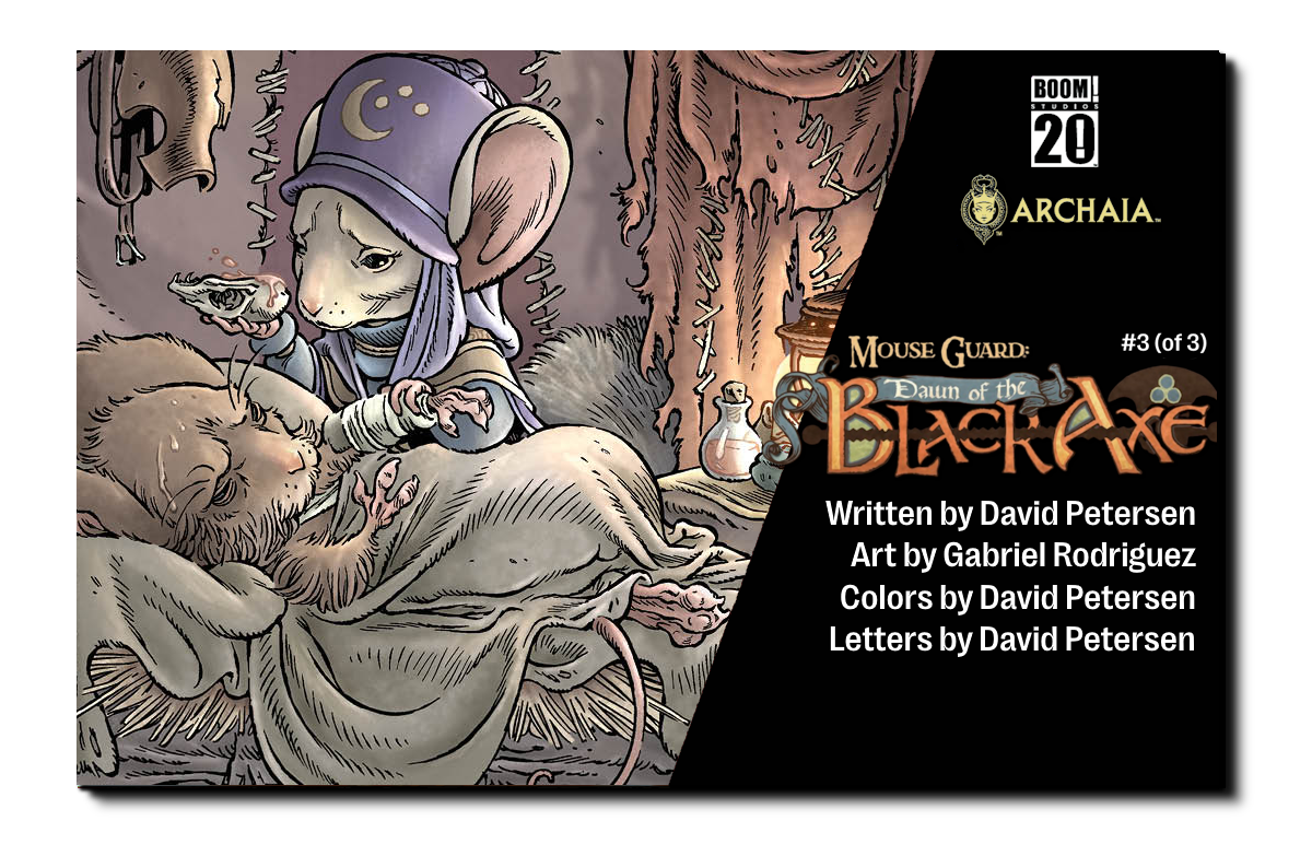 There are few series as lauded and beloved as David Petersen’s Eisner Award-winning and New York Times bestselling Mouse Guard. Now, in celebration of the 20th anniversaries of both Mouse Guard and BOOM! Studios, David Petersen, along with Eisner-nominated artist Gabriel Rodríguez (Locke & Key), bring a brand new chapter to life in this sprawling saga with MOUSE GUARD: Dawn of the Black Axe.