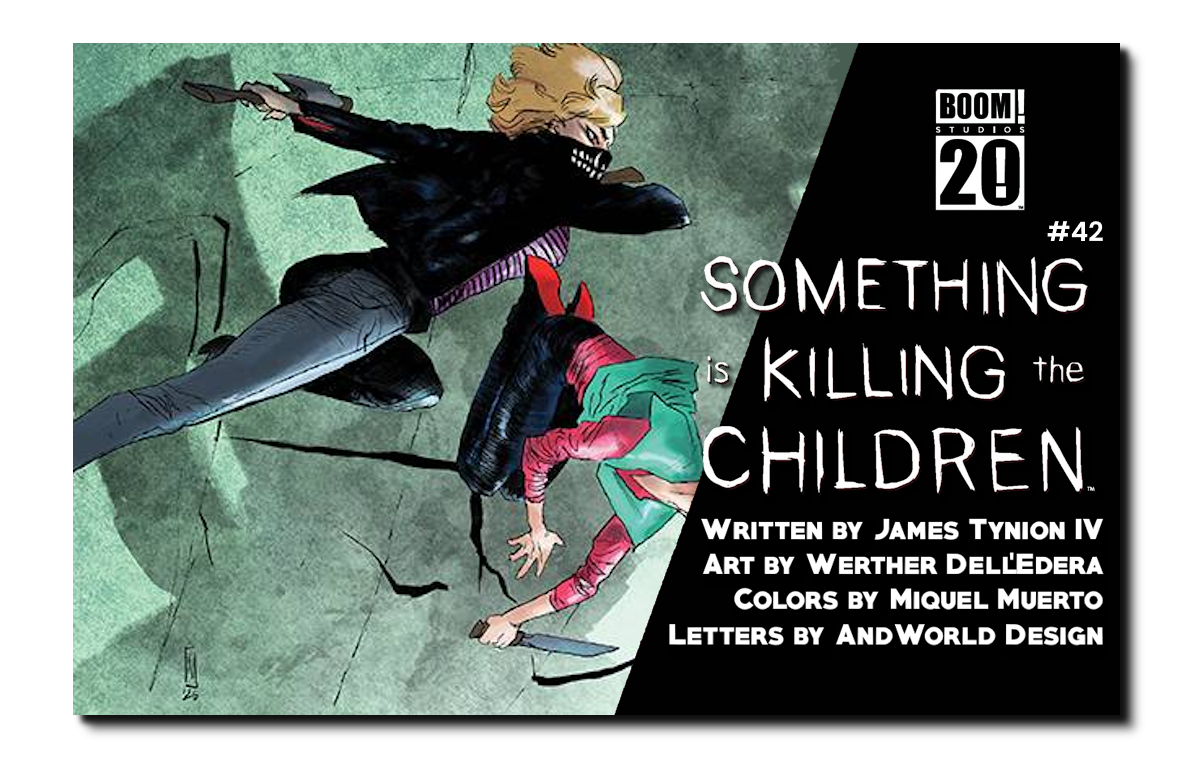 This Wednesday, June 11th, BOOM! Studios is releasing another thrilling issue of SOMETHING IS KILLING THE CHILDREN! As the Slaughterverse enters its sixth year and BOOM! Studios celebrates its 20th Anniversary, a brand new story arc of the Eisner-winning team of James Tynion IV and Werther Dell’Edera’s Something is Killing the Children begins!