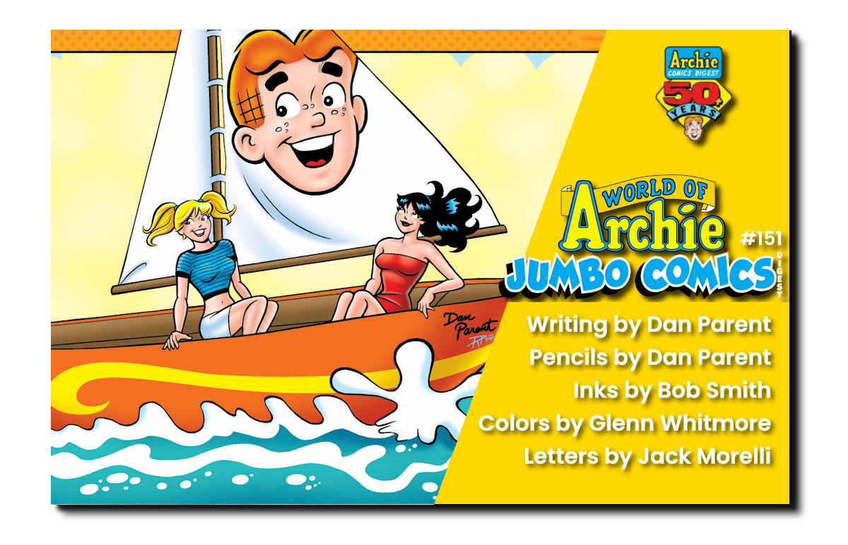 On Wednesday, June 11th, Archie Comics is releasing WORLD OF ARCHIE JUMBO COMICS DIGEST #151! – featuring a new summer-themed story by Dan Parent starring Wilbur, a character who predates Archie. ALSO!!! The complete classic story “Frisbee Fracas” by Frank Doyle and Harry Lucey!