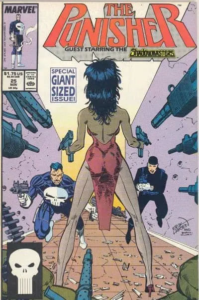 While the first of the masters to dominate The Punisher ‘look’ after Romita Sr. would be the great Mike Zeck and Joe Jusko’s run with every single one of their outstanding The Punisher Magazine covers (which gets a whole section), there are so many other great talents that have done The Punisher proper justice, like during Mike Baron’s run with artist Klaus Janson, Jim Lee, Whilce Portacio.